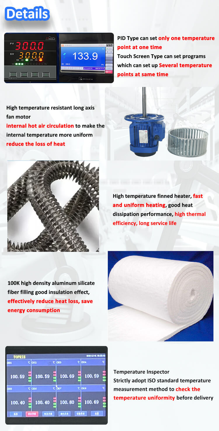 | मॉडल | आंतरिक आकार (W × H × D सेमी) | बाहरी आकार (W × H × D सेमी) | शक्ति (किलोवाट) |